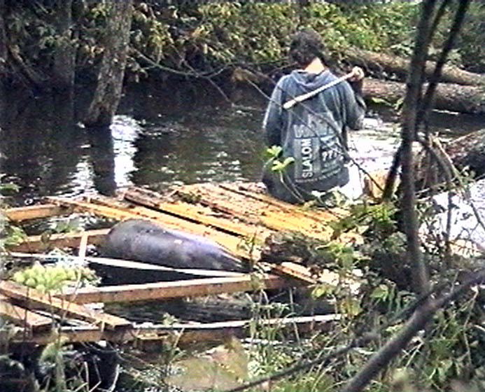 Пришлось разбирать плот и перетаскивать его через огромное поле.