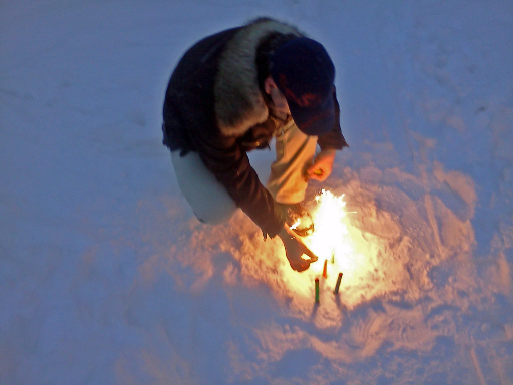 Традиционное поджигание чего-нибудь горящего или взрывающегося. Без фанатизма.